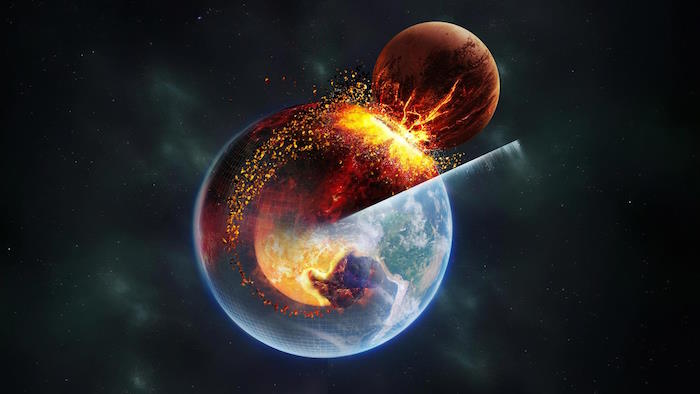 Тем не менее исследователи Солнечной системы подозревают, что выход из столь трудного положения возможен: они давно обдумывают с этой точки зрения самую распространенную гипотезу происхождения Луны — «гипотезу Тейи». Ее также называют импактной, или гипотезой гигантского столкновения. По этой версии, в самом начале своей истории, примерно 4,5 миллиарда лет назад, Земля столкнулась с планетой примерно размером с Марс, а из обломков сформировалась Луна.
