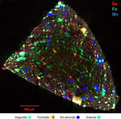 Результаты работы команды показывают, что частицы астероида состоят из широкого спектра минералов и соединений, содержащих такие элементы, как селен, марганец, железо, сера, фосфор, кремний и кальций.
