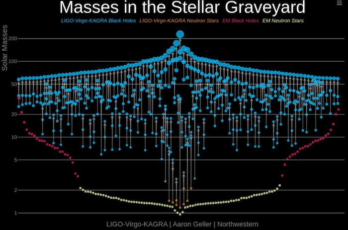 До сих пор совместные наблюдения гравитационно-волновых обсерваторий LIGO, Virgo и KAGRA показывали только 90 кандидатов в слияния, порождающие гравиволны. Новый каталог более чем удвоил число этих объектов и породил серьезные астрофизические вопросы.