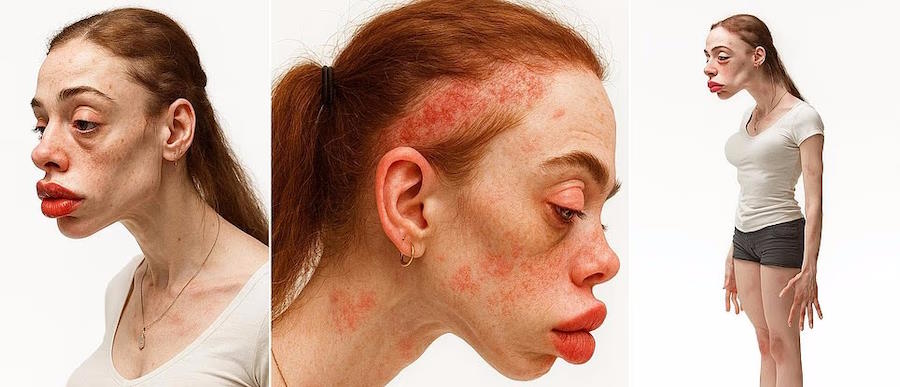 У их гротескной модели по имени Ава пятнистая кожа, сгорбленная спина и заостренный "ведьмин подбородок" - результат многократных пластических операций на лице.