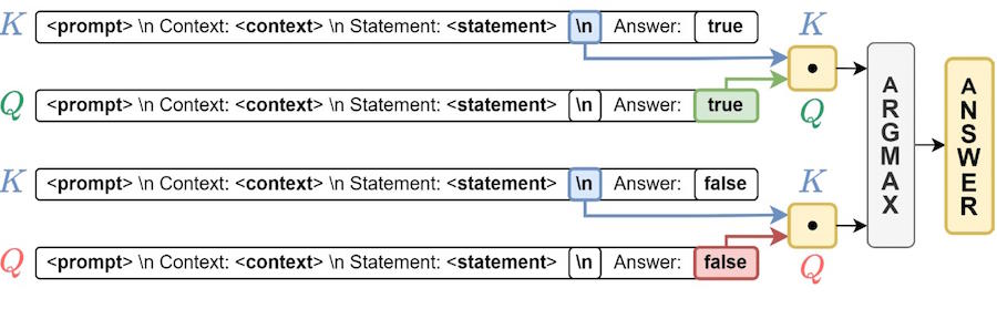 Команда исследователей разработала метод, основанный на анализе внутреннего механизма внимания, а именно на взаимодействии «запросов» («queries») и «ключей» («keys»). Когда модель анализирует текст, на каждой голове внимания внутри неё формируется несколько внутренних представлений этого текста в виде матриц чисел. При умножении друг на друга двух таких матриц, называемых «запросом» и «ключом» устанавливаются связи между различными частями текста. Ученые предположили, что логическая состоятельность вывода по отношению к исходным данным должна отражаться в силе связи между внутренними представлениями исходных данных и ответа модели. Они разработали метрику QK-score, оценивающую, насколько хорошо сила этой связи в отдельных головах внимания модели предсказывает правильность логического вывода. Ученые предположили, что головы с высоким QK-score играют важную роль в способности модели к логическим рассуждениям.