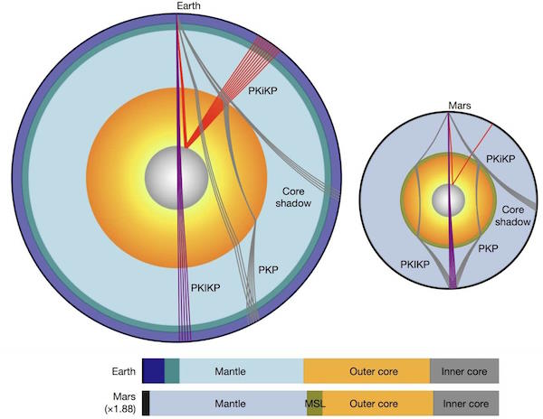 У каменистых планет вроде Земли и Марса внутри есть жидкие и твердые слои. Когда сейсмические слои натыкаются на границы между этими слоями, они отражаются и преломляются. По их поведению можно судить о внутренней структуре планеты.