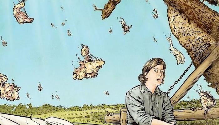 Мистер Харрисон Гилл посетил дом Краучей на следующий день после происшествия и обнаружил куски мяса, торчащие из заборов и разбросанные по земле.