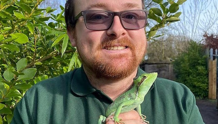 "У нас восемь маленьких детенышей, но у нас есть только самка игуаны с каской на голове", - сказал он в интервью BBC Radio в Шропшире.