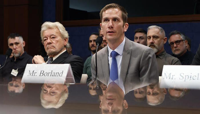 На слушаниях также были представлены показания ветерана ВВС США Дилана Борланда, который рассказал, что в 2012 году на военно-воздушной базе Лэнгли в Вирджинии был замечен 100-футовый бесшумный треугольный летательный аппарат. Борланд сказал, что объект не издавал ни звука, ни шума ветра и, по-видимому, был сделан из материала, похожего на жидкость.