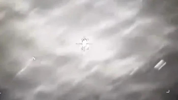 На видео видно, как ракета, выпущенная другим дроном Reaper, попадает в блестящий шарообразный объект. Несмотря на столкновение, объект оказался неповрежденным и сохранил свою траекторию.