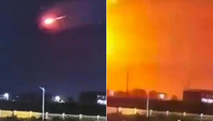 В социальных сетях появилось видео, на котором видно, как огненный шар пересекается с ярким светом в небе, что приводит к мгновенному взрыву. В нескольких роликах эта сцена показана с разных ракурсов, причем огненный шар описывает изогнутую траекторию, прежде чем уничтожиться.