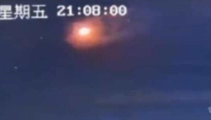 На кадрах видно, как красный огненный шар сталкивается с белым неопознанным объектом, после чего взрывается.