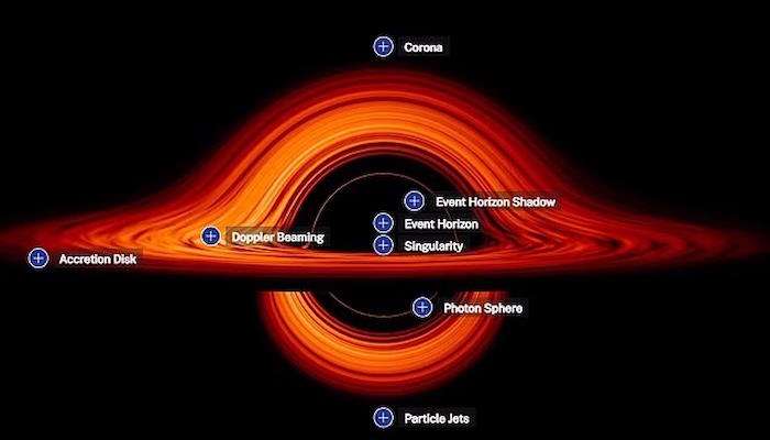 Аккреционный диск создается материалом, излучающим энергию при падении в черную дыру, будь то газ, пыль или вещество.