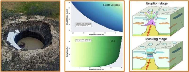 Согласно их модели, GEC образуются, когда газ и тепло поднимаются глубоко из-под земли. Тепло расплавляет слой вечной мерзлоты (слой постоянно мерзлого грунта, который действует как крышка), делая его тоньше. Тем временем газ скапливается под ней, и, поскольку ему некуда деваться, давление повышается. С потеплением климата вечная мерзлота тает еще больше, делая крышку тоньше. В конечном итоге давление становится слишком большим и приводит к взрывному обрушению, в результате которого образуется большой кратер.