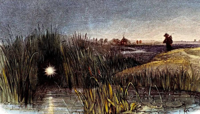 Блуждающие огни, их еще называют болотными или бесовскими огоньками, — редкое природное явление, которое обычно наблюдают по ночам на болотах. Эти синеватые или голубовато-бледные огни, бесшумно появляющиеся и исчезающие в ночи, традиционно связывали с потусторонними силами — душами грешников, призраками, лесными духами. Научный взгляд на явление сформировался гораздо позже.