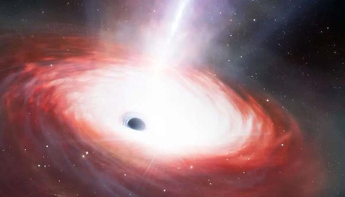 "Вместо того, чтобы быстро вращаться, как предполагалось ранее, эта черная дыра извергает газ, которым она питается. Газ выбрасывается из—за огромной плотности света - это самый яркий объект во Вселенной, о котором мы знаем".