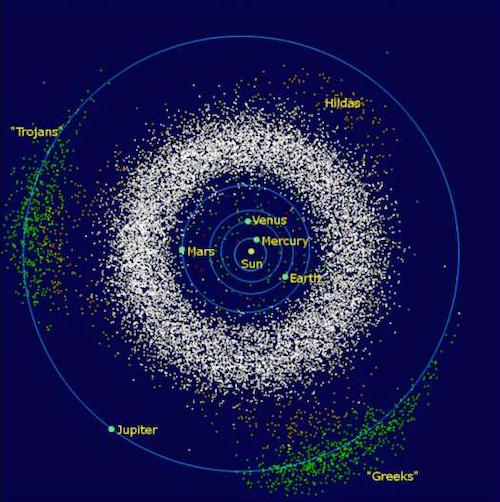 Пояс астероидов находится на орбите между Марсом и Юпитером и представляет собой обширное скопление горных пород, которые, как считается, никогда не формировались на планете. Когда 4,6 миллиарда лет назад сформировалась наша Солнечная система, материал в этой области должен был объединиться в планету; однако гравитационное влияние Юпитера помешало этому произойти, взбаламутив регион так, что столкновения стали скорее разрушительными, чем конструктивными. То, что осталось сегодня, составляет лишь около 3% массы Луны, разбросанной на миллионы километров.