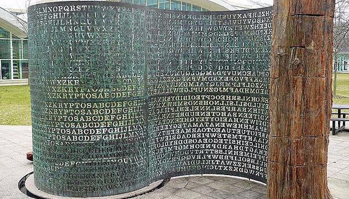 Перед штаб-квартирой ЦРУ в Лэнгли, штат Вирджиния, стоит загадка, которая на протяжении 35 лет ускользала от самых ярких умов агентства. Изогнутая металлическая скульптура, известная как Kryptos, была создана художником Джимом Сэнборном в 1990 году.