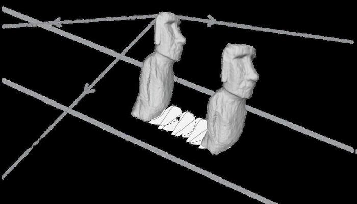 Чтобы исследовать, как может двигаться статуя большего размера, команда Lipo создала 3D-модели моаи с высоким разрешением и определила отличительные особенности дизайна – широкие D-образные основания и наклон вперед, – которые с большей вероятностью позволят перемещать их зигзагообразными движениями.