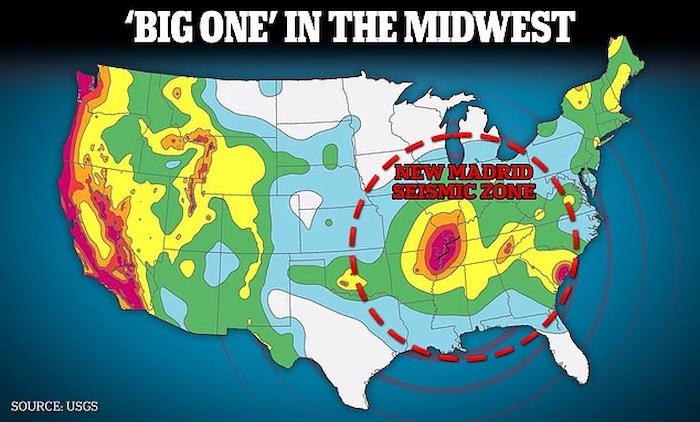 Он объяснил, что первоначальное землетрясение вдоль Нью-Мадридского разлома вызовет "цепную реакцию", включая повторный толчок магнитудой 6,5, который затронет районы от Тексарканы, штат Техас, до Оклахомы.