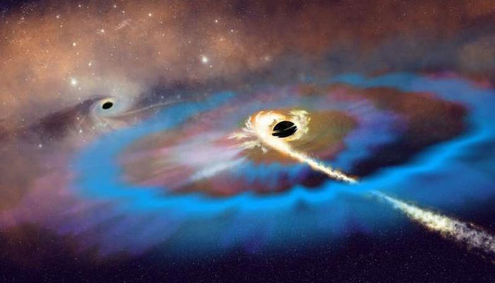 Однако в этом исключительном случае черная дыра была расположена примерно в 2600 световых годах (0,8 килопарсека) от ядра галактики-хозяина, что свидетельствует о том, что сверхмассивные черные дыры могут скрываться в самых неожиданных местах.