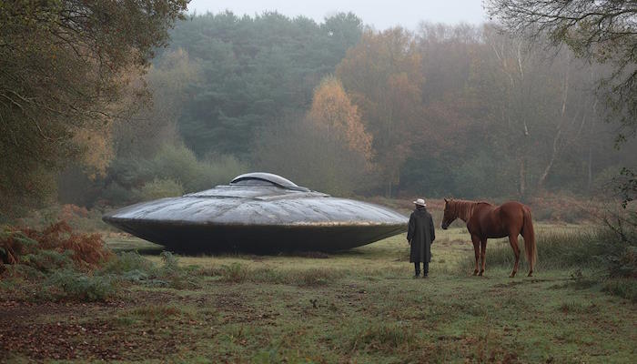 В этот момент Джон искренне поверил, что стал свидетелем какого-то военного эксперимента с использованием передовых технологий, и поэтому продолжал приближаться к месту происшествия, желая увидеть, что произойдет дальше, и чем ближе он подходил, тем больше деталей замечал. Например, он мог оценить, что летательный аппарат был около 100 футов в поперечнике и, казалось, “парил над землей, как судно на воздушной подушке”. Однако, когда он подошел еще ближе, фигура у окна явно заметила его присутствие. Более того, фигура, одетая в комбинезон цвета “тусклый металлик”, похожий на “бумажную фольгу”, ростом около пяти футов и с “большими миндалевидными глазами”, жестикулировала в его сторону. Джону потребовалось всего мгновение, чтобы понять, что этот человек ведет обратный отсчет.