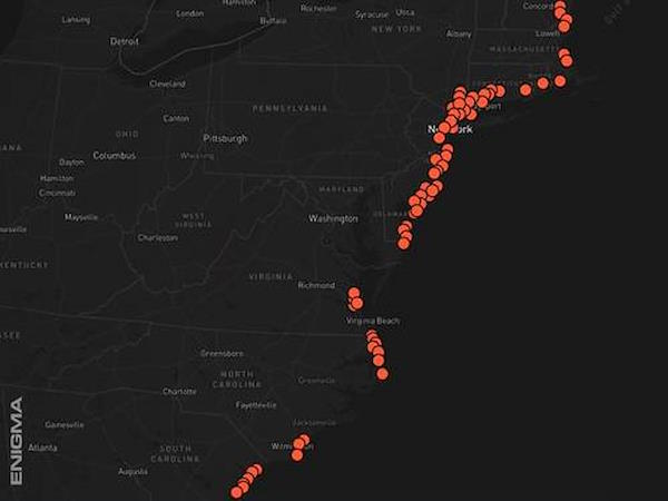 По состоянию на август 2025 года приложение Enigma зарегистрировало более 9000 наблюдений в США в радиусе 10 миль от береговых линий и основных водных путей. Примерно в 1500 из этих сообщений конкретно упоминаются “вода”, “океан”, “озеро” или “пляж” (17%), и примерно 500 из них произошли в радиусе 5 миль от береговой линии (5,6% от общего числа). Более чем в 150 сообщениях описываются объекты, парящие над водоемами, поднимающиеся в них или опускающиеся с них. Больше всего сообщений о USO поступает из Калифорнии (389) и Флориды (306), что неудивительно, учитывая их многочисленное население на побережье.