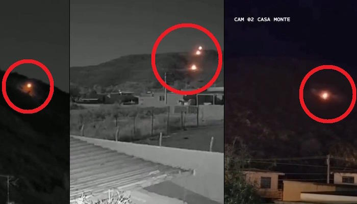 | В выложенной записи (смотрите ниже) показаны несколько инцидентов с ярко-оранжевые летающими шарами, которые двигались невысоко над холмами. |
