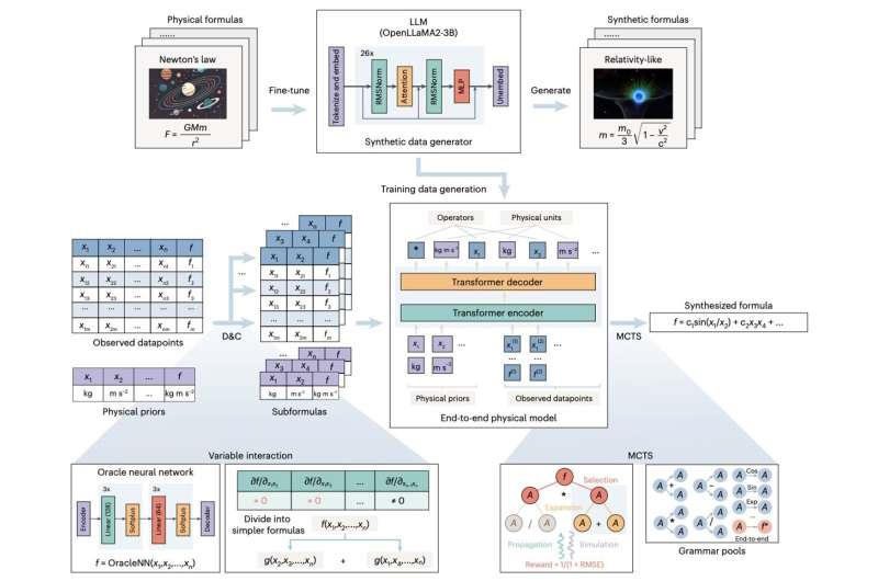 PhyE2E, новая платформа искусственного интеллекта, представленная Чжоу и его коллегами, была разработана на основе физических данных и математических уравнений. Во время обучения модель изучала, как "выглядят" правдоподобные формулы, связанные с физикой, путем тонкой настройки широко распространенных физических уравнений, а затем создания других, синтезируя различные варианты, согласованные с единицами измерения.