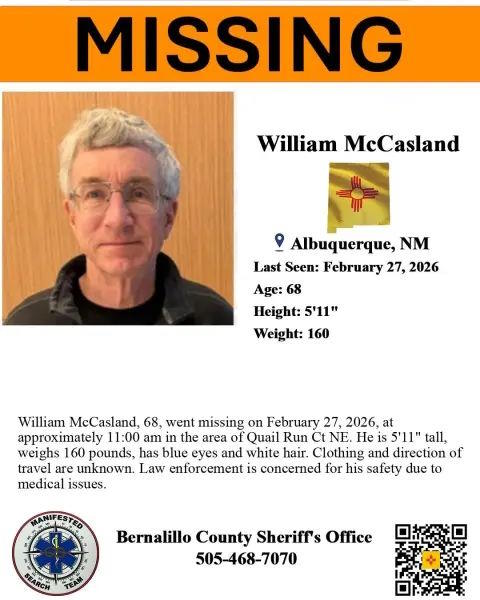 Утром в день своего исчезновения Маккасланд коротко пообщался с мастером на все руки, прежде чем его жена ушла на встречу, сообщили в офисе шерифа округа Берналилло поздно вечером в четверг.